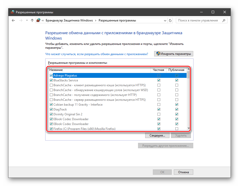 Данная функция позволяет разрешить определенным программам подключение к сети для обмена данными.