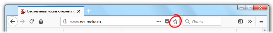 Для добавления страницы на панель закладок, нажмите на иконку со звездочкой в конце белой строки.