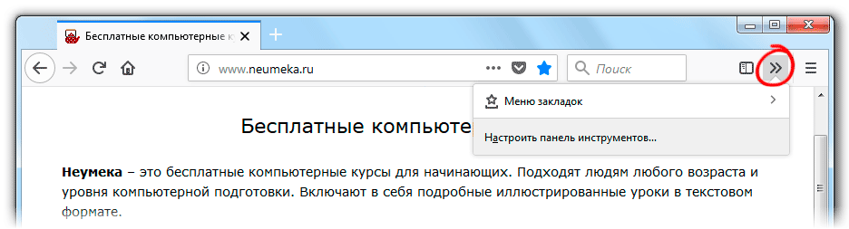 Чтобы его потом открыть, щелкните по иконке с двумя стрелками и нажмите на пункт «Меню закладок».
