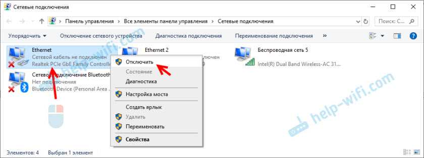 Так же включить/отключить сетевой адаптер можно в окне «Сетевые подключения» (для запуска нажимаем Win+R и выполняем команду ncpa.cpl). В Windows 10 подключение называется «Ethernet». В Windows 7 – «Подключение по локальной сети».