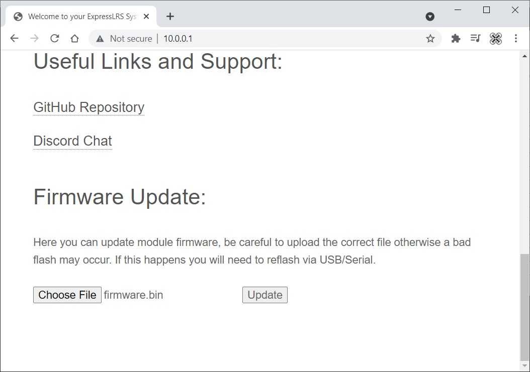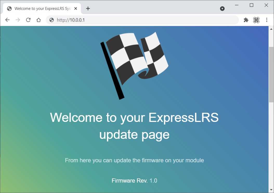 Шаг 3. После подключения к сети «ExpressLRS TX Module«, откройте в браузере адрес: http://10.0.0.1