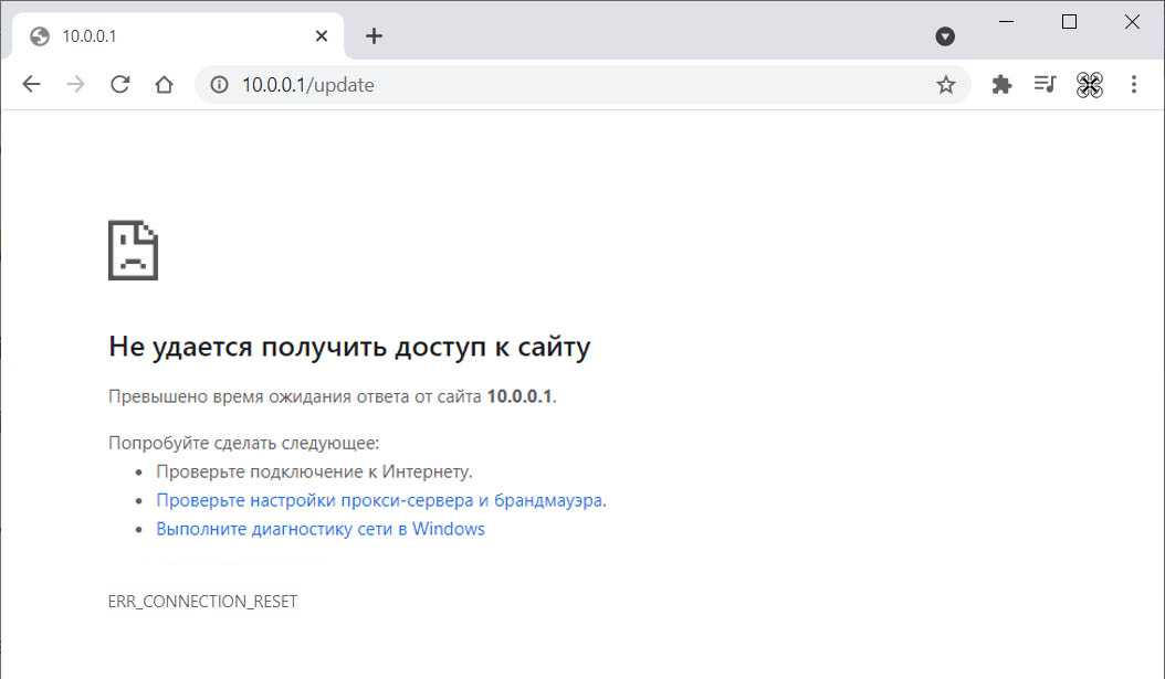 Шаг 5. После этого дождитесь, когда страница начнет перенаправлять на http://10.0.0.1/update.