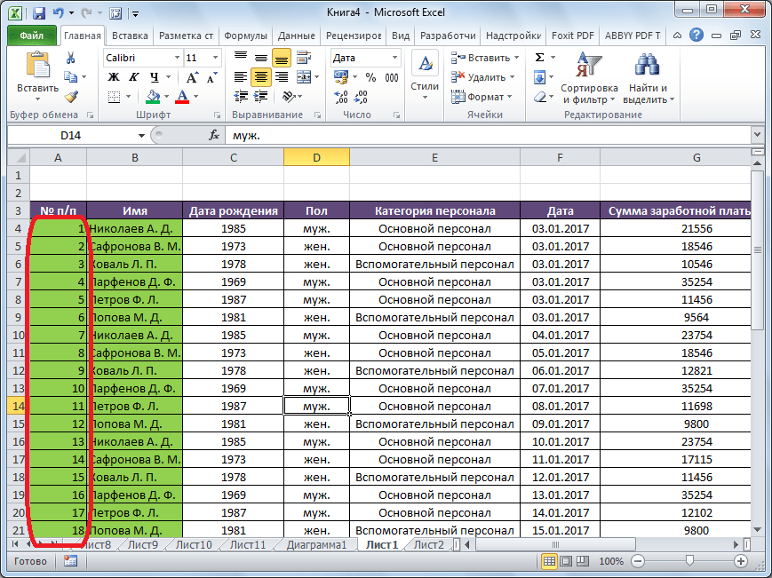 Как видим, нумерация строчек автоматически заполнилась по порядку.
