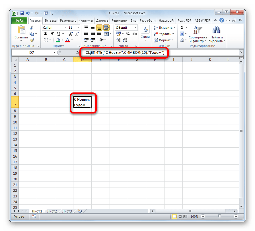 Также можно осуществить перенос внутри ячейки при помощи формул. Этот вариант особенно актуален в том случае, если содержимое выводится с помощью функций, но его можно применять и в обычных случаях.