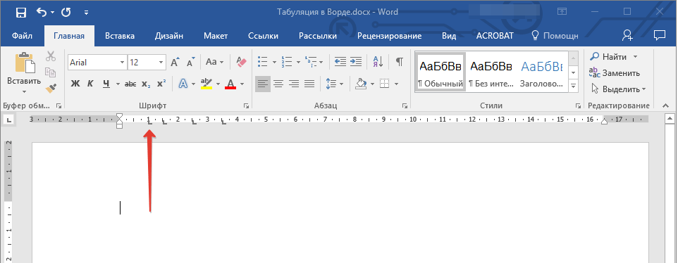 Устанавливаем позицию табуляции через инструмент “Табуляция”