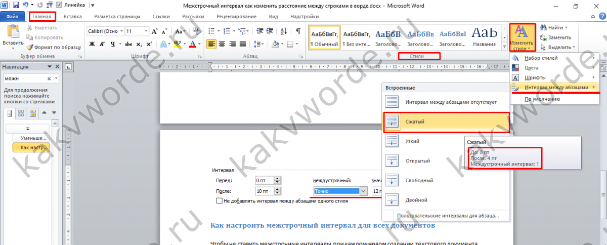 Как вы можете заметить, добавлять и удалять интервалы перед абзацем и после — не трудно. Необходимо выполнить действия: