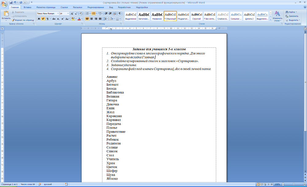 Иногда случается, что содержимое списка нужно отсортировать. К примеру, вы произвольно ввели перечень сотрудников, а потом решили, что они должны располагаться по алфавиту от А до Я. Делается это так: