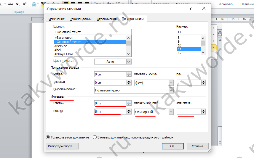 Чтобы изменения вступили в силу, не забудьте выбрать «В новых документах, использующих этот шаблон» иначе все, что вы изменили, применится только к действующему документу.