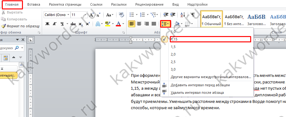 Таким образом, можно установить уже заданный текстовым редактором междустрочный интервал. Если возникла необходимость уменьшить или увеличить межстрочное расстояние до значения, которого нет в списке, то стоит выбрать строку «Другие варианты междустрочных интервалов».