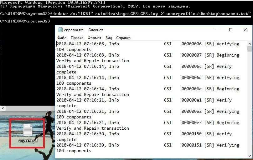 На Рабочем столе появится текстовый файл, в котором вы найдёте подробности того, с чем команда sfc /scannow столкнулась:
