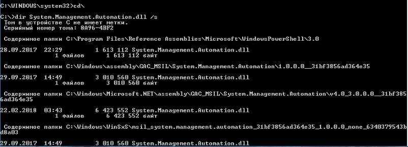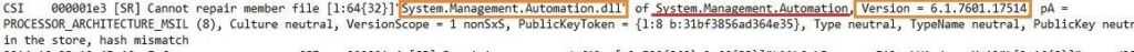 Например, система обнаружила повреждение файла System.Management.Automation.dll и не смогла его починить.