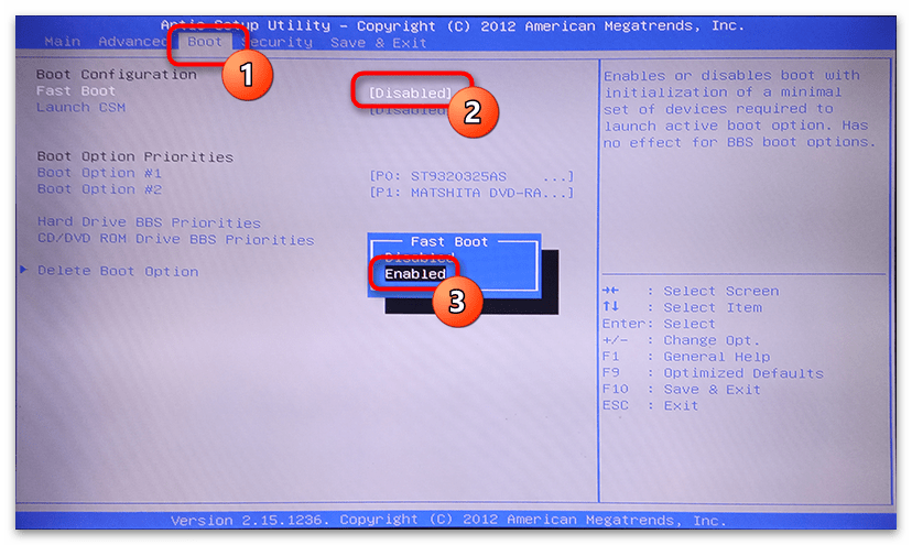 Клавишей «Esc» вернитесь к предыдущему разделу и перейдите в «Boot». Здесь вам нужно включить «Fast Boot», выбрав для неё опцию «Enabled».