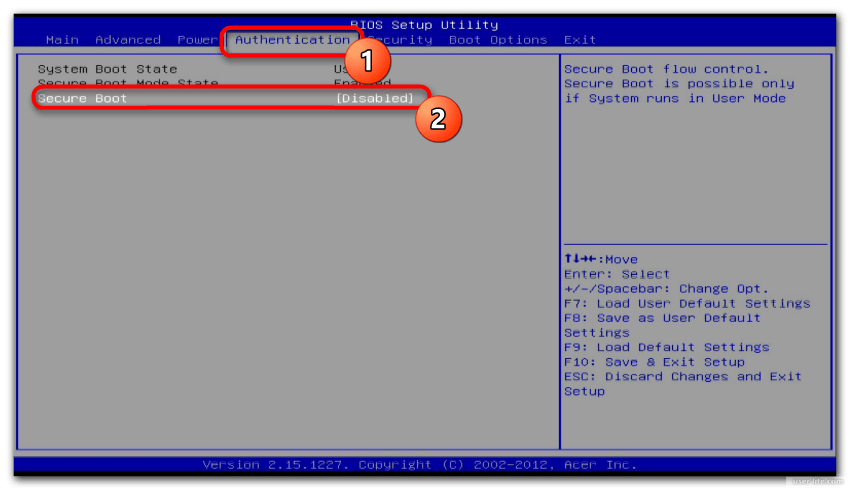 Стоит отметить, что «Secure Boot» может быть на вкладке «Autentification» — всё зависит от года выпуска БИОС.