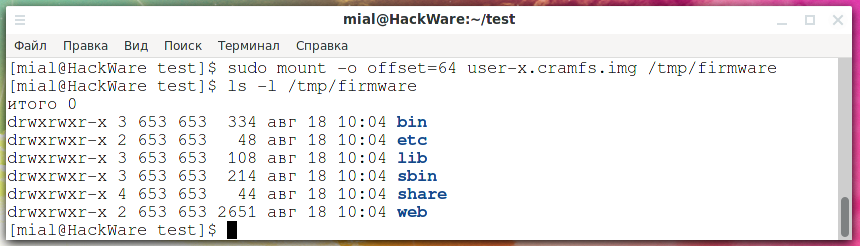 sudo mount -o offset=64 user-x.cramfs.img /tmp/firmware