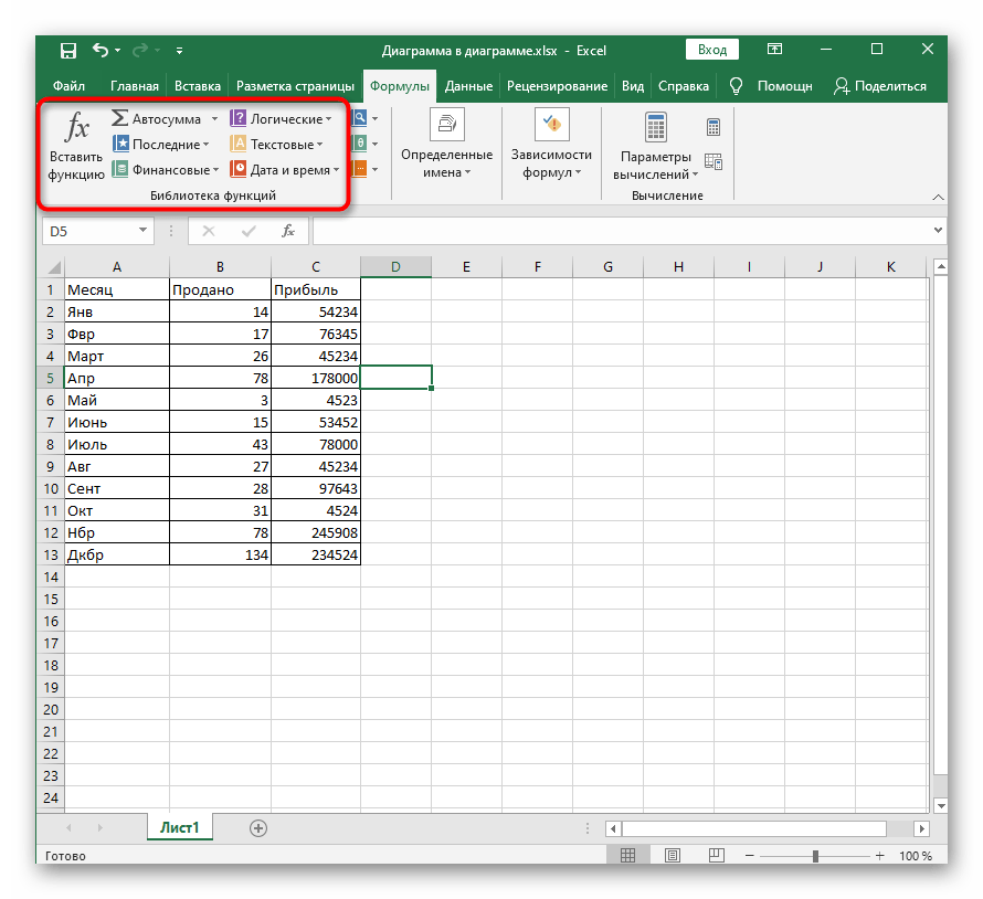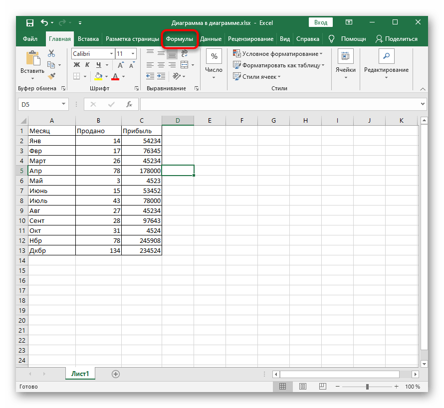 Способ 2: Вкладка «Формулы»