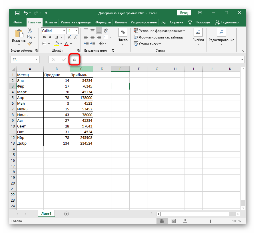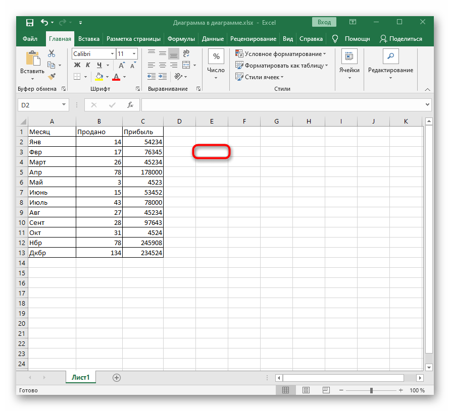 - Как уже было сказано в первом способе, для начала выделите ячейку, где должна располагаться формула.
