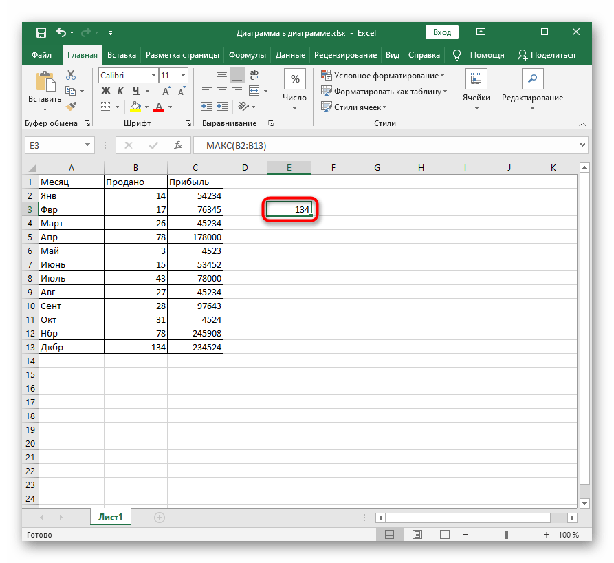 Результат формулы отобразится после нажатия по клавише Enter.