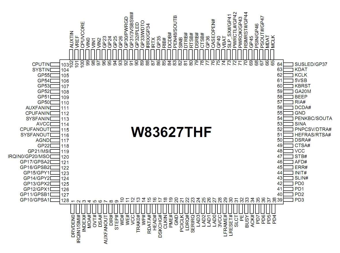 Для определенности возьмем частный случай — материнские платы, использующие Южный мост Intel ICH6, описанный в (это платы на чипсетах Intel 915 и 925) и микросхему MIO Winbond W83627THF, описанную в .