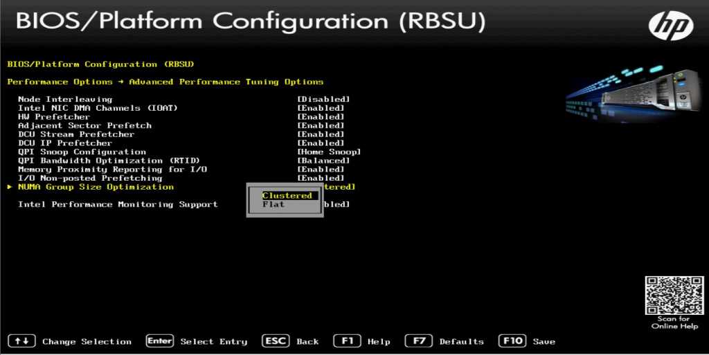 В-третьих, по умолчанию BIOS настроен таким образом, чтобы обеспечивать работу максимального количества логических процессоров в системе. У сервера два процессорных сокета и параметр NUMA Group Size Optimization выставлен в значение Clustered, обеспечивающее работу максимального количества ядер/процессоров. Получается, что настройка BIOS (напомним, что у сервера клиента всего 32 ядра) разбивала имеющиеся ядра/процессоры на 2 kgroup.