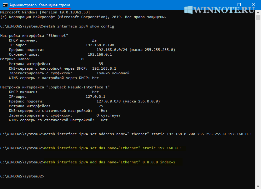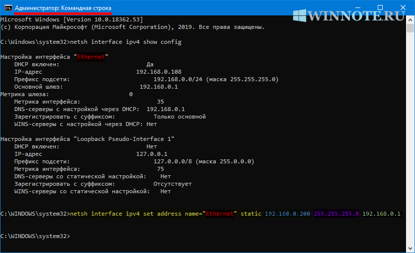 Как установить статический IP-адрес использую командную строку