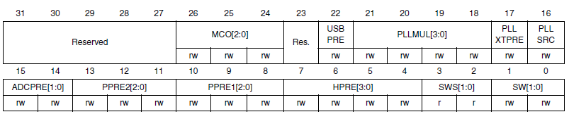RCC->CFGR |= RCC_CFGR_PLLMULL_0 | RCC_CFGR_PLLMULL_1 | RCC_CFGR_PLLMULL_2; RCC->CFGR &= ~(RCC_CFGR_PLLMULL_3);