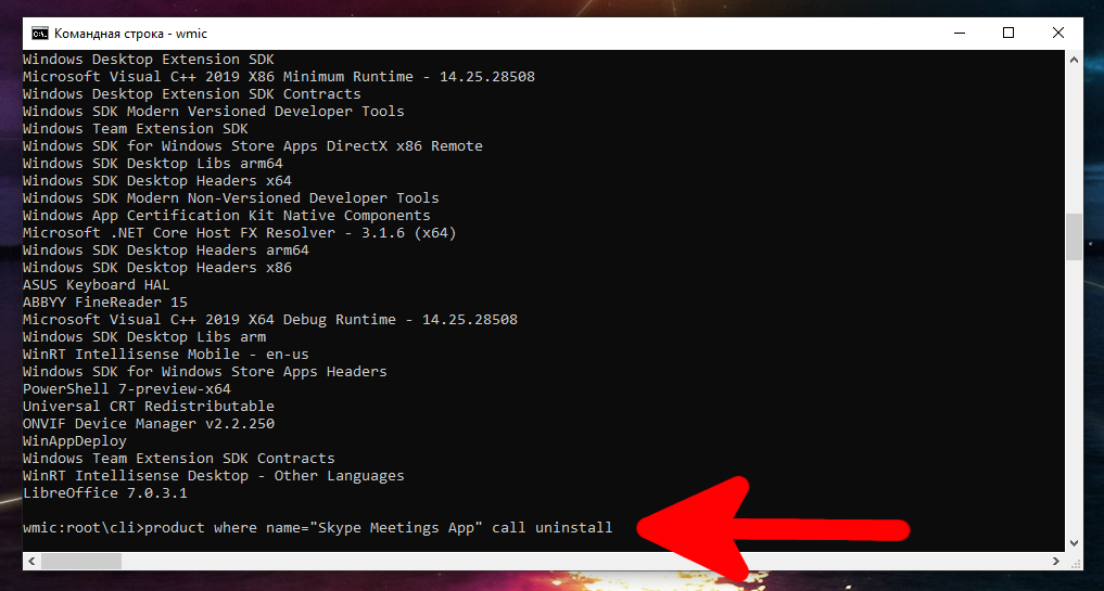 Просто замените название программы названием программы, которую вы хотите установить. Например, если мы хотим удалить приложение Skype Meetings, мы должны ввести эту команду: