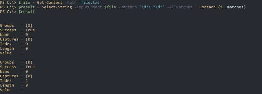 То есть результат выше — это массив. В массивах Powershell мы можем получать содержимое по индексам. В следующем примере я просто уберу точку с запятой: