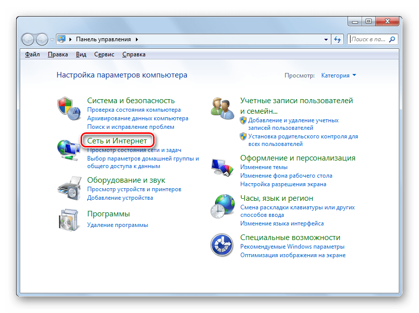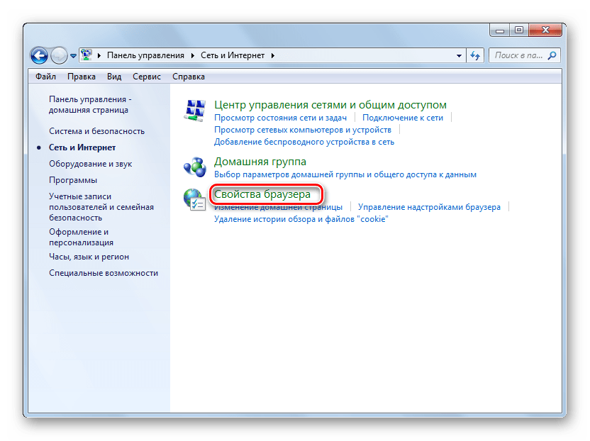 Деактивировать прокси-сервер в Виндовс 7 можно также и глобально для всего компьютера в целом, используя для этого системные настройки, доступ к которым можно получить через «Панель управления».