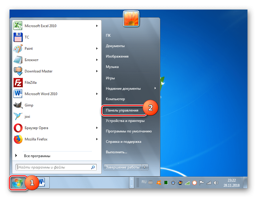 - Щелкните кнопку «Пуск» в нижней левой части экрана и выберите из открывшегося списка вариант «Панель управления».