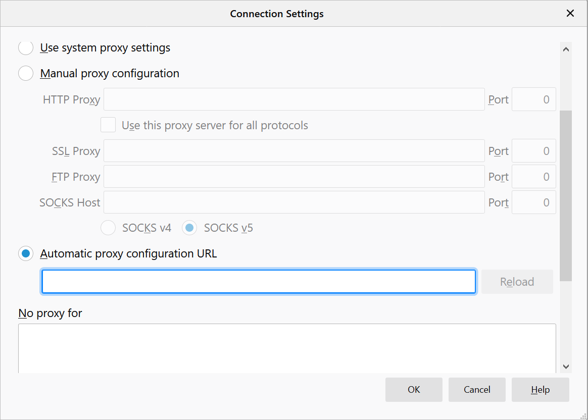 Существует три способа использования прокси-сервера, включая автоматическую настройку прокси-сервера (опция по умолчанию).