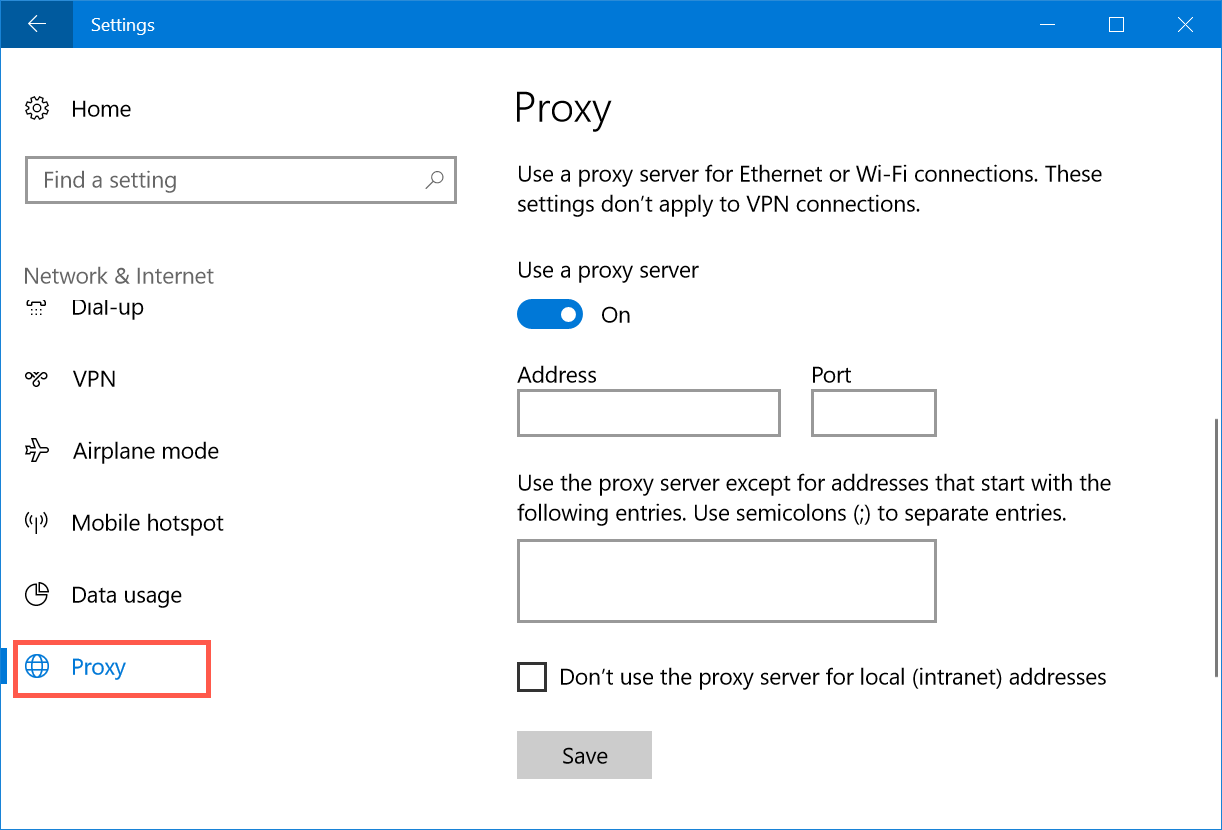 Как настроить прокси-сервер с помощью приложения «Параметры» в Windows 10.