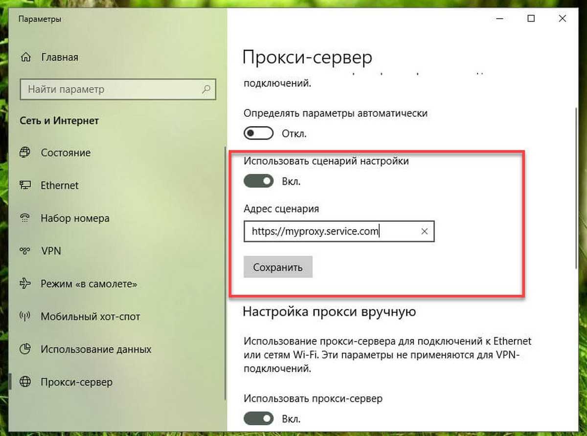 Шаг 1. В разделе «Автоматическая настройка прокси» включите переключатель «Использовать сценарий настройки».