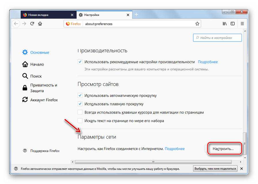 Прежде всего, выясним, как отключить прокси-сервер через встроенные настройки браузера Mozilla Firefox.