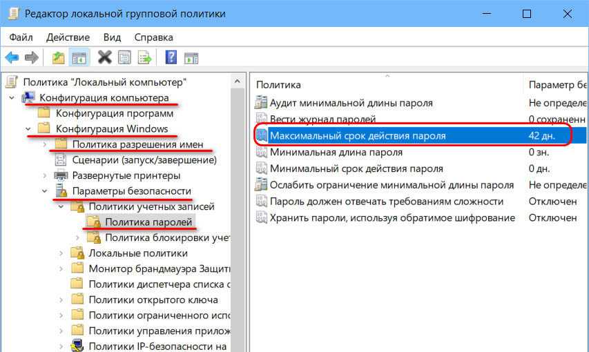 С первыми двумя возможностями всё и так ясно, а что значат три последние? Если не будет активна опция неограниченного срока действия пароля, пользователь вынужден будет его менять через каждые 42 дня. При необходимости эти 42 дня можно сменить на любой иной срок, но делается это уже в локальных групповых политиках, в их редакторе gpedit.msc.