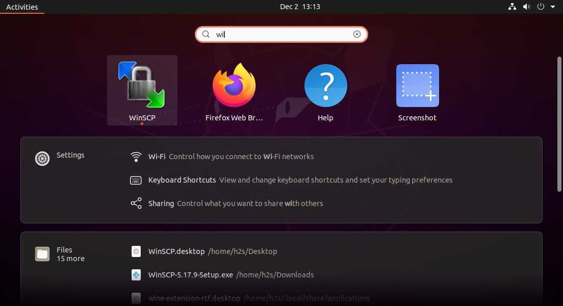Once the installation is completed. Go to All Applications and search for “WinSCP” on Ubuntu Linux. As you find it, simply double click on it to run.