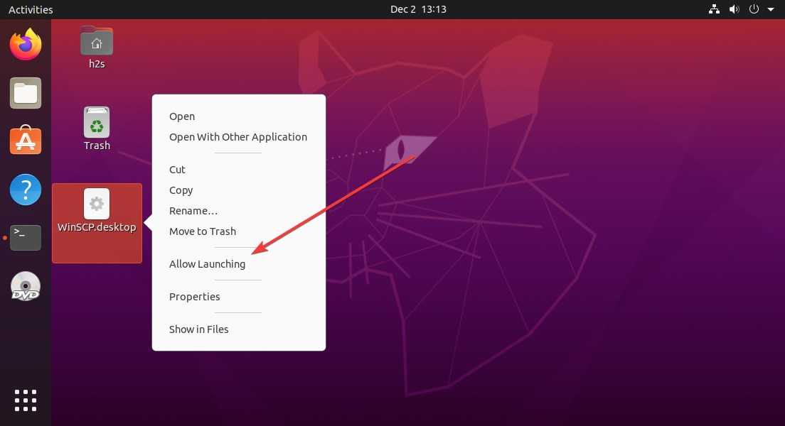 Чтобы запустить WinSCP под Linux (Ubuntu 12.04), выполните следующие действия: