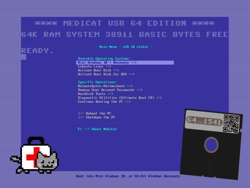 MediCat USB — это полная замена загрузочного диска Hiren для современных компьютеров. MediCat USB призван заменить снятый с производства и устаревший загрузочный диск Hiren. Он ориентирован на современное оборудование и следует циклу выпуска Ubuntu с обновлением выпуска каждые 6 месяцев. Автор MediCat DVD разработал этот загрузочный инструментарий как неофициальный преемник популярной загрузочной среды Hiren’s Boot CD. В этом отношении в меню перечислены следующие параметры: