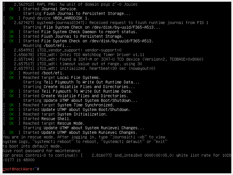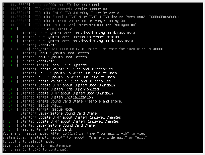 Загрузка остановится на этапе консоли и там будет написано, что введите пароль root, либо нажмите CTRL+d для продолжения. Если ввести пароль root, то окажетесь загруженным в Kali Linux без графического интерфейса. Если нажать CTRL+d, то продолжится загрузка и откроется графический интерфейс.