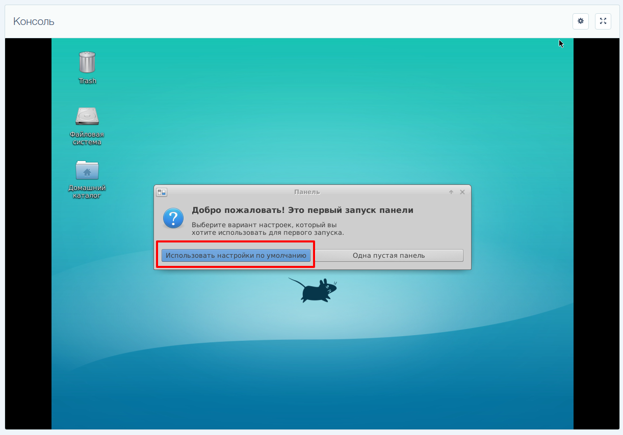 5. После ввода реквизитов отобразится графический интерфейс и диалоговое окно, в котором необходимо выбрать стандартную настройку панели.