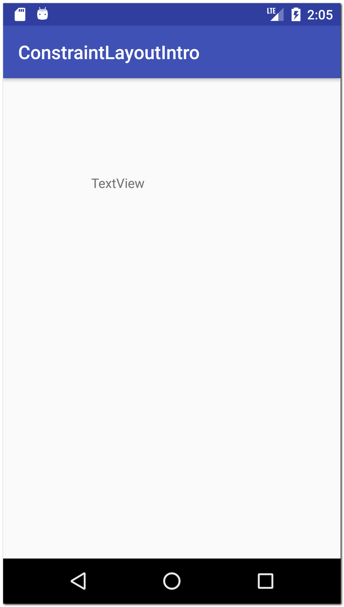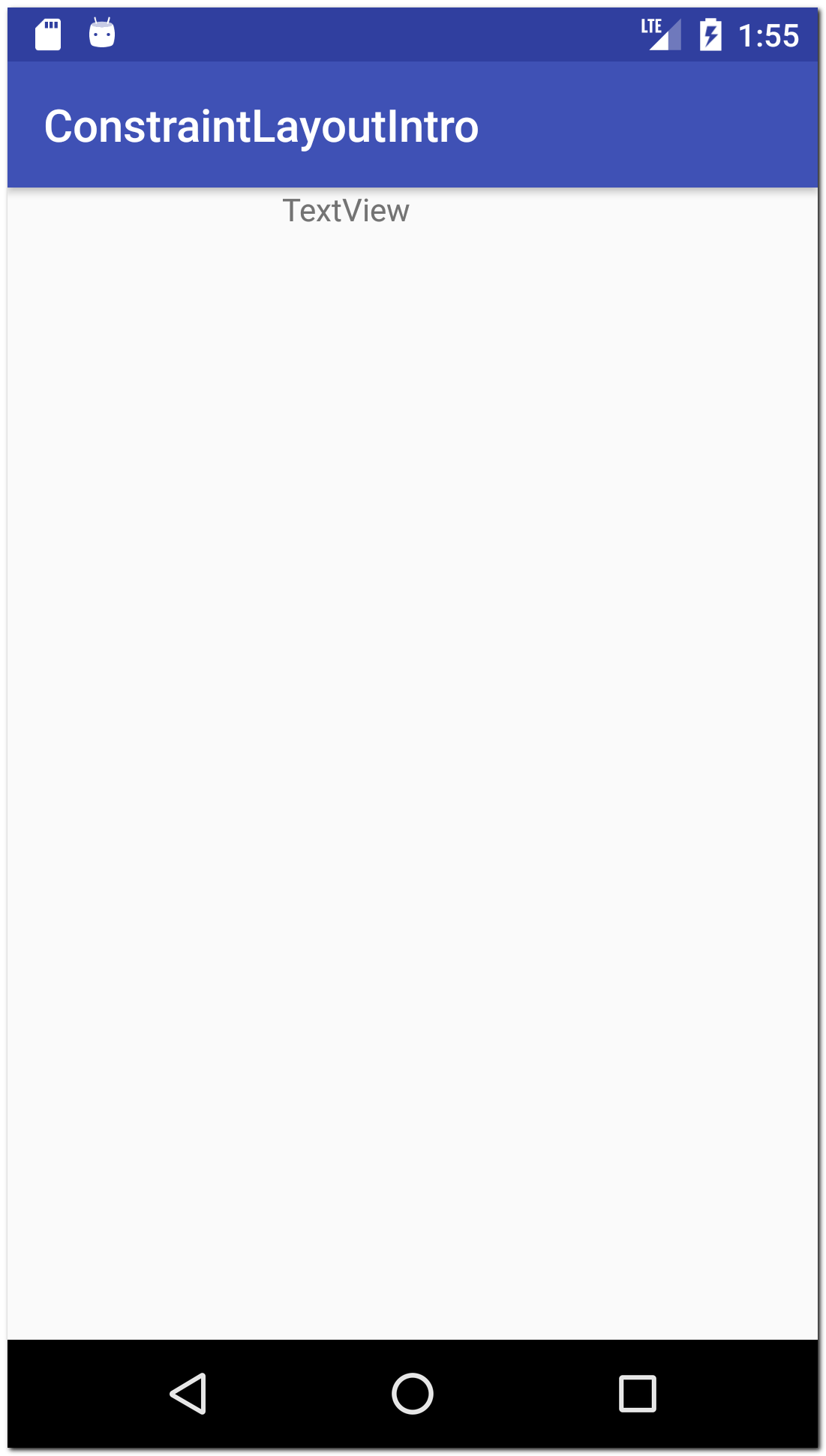 Теперь TextView привязан и по горизонтали, и по вертикали. Т.е. он точно знает, где он должен находиться на экране во время работы приложения.