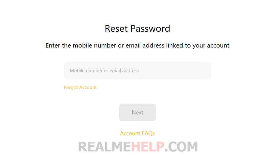 А еще есть другой вариант, связанный с использованием официального сайта Реалми. Его разумно рассматривать в том случае, если вообще нет никакого доступа к учетной записи. Как и в предыдущем случае, мы приводим пошаговое руководство: