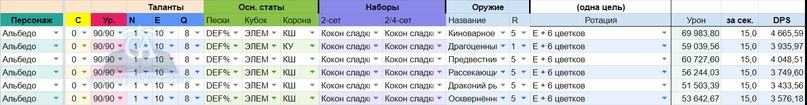 Расчёты против монстра 100-го уровня с сопротивлением 10% (полный запас HP), без внешних бонусов. 44 сабстата равномерно распределены между всеми 10-ю характеристиками, КШ/КУ сбалансированы в соотношении 1:2,5. Ротация, где мы используем только элем. навык один раз.