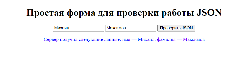 Всё работает. Синий текст мы получили от PHP-скрипта на сервере. Связь налажена!