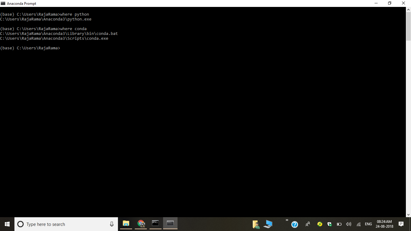 Перейти к приглашению anaconda (введите «anaconda» в поле поиска на вашем ноутбуке). введите следующие команды