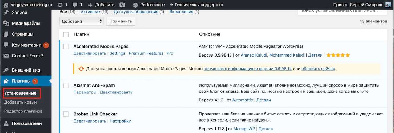 Будет медленная работа сайта – будут низкие позиции в поисковой выдаче. Достаточно установить несколько самых нужных и важных плагинов. Весь список установленных плагинов будет отображаться в этом разделе.