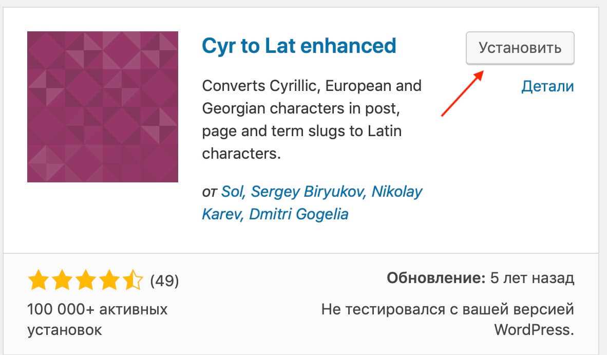 Следующий плагин, который нам потребуется, это Cyr to Lat enhanced. Этот плагин преобразовывает слова из кириллицы в латиницу.