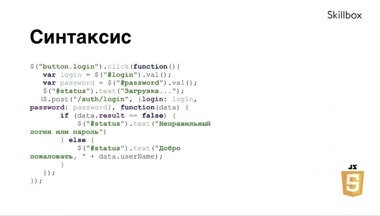 Пример синтаксиса JavaScript — обработка формы входа