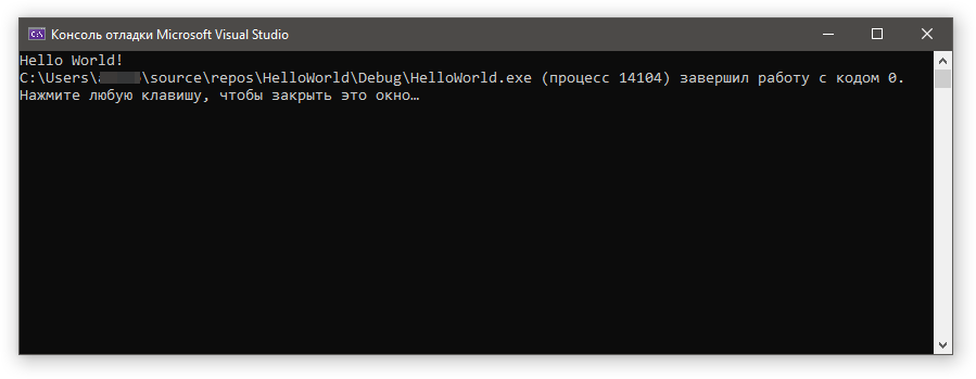 В левой или правой части окна вы должны увидеть окно под названием Обозреватель решений. В этом окне Visual Studio создала для вас решение (решение «HelloWorld»). Внутри него, имя которого выделено жирным шрифтом, находится ваш новый проект (HelloWorld). Visual Studio создала для вас в этом проекте ряд файлов, в том числе HelloWorld.cpp (в элементе дерева Исходные файлы (Source Files)). Вы также можете увидеть некоторые другие файлы .cpp или .h, которые пока можете игнорировать.