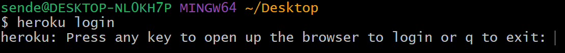 Теперь самое время авторизоваться на heroku.com через консольную утилиту. Наберите в терминале: