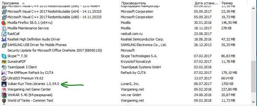 В Windows 10 откройте «Все параметры» > «Приложения» > «Приложении и Возможности». Если вы видите запись Vulkan Run Time Libraries 1.0.54.0 или другую версию, значит он установлен уже в вашей системе Windows 10.